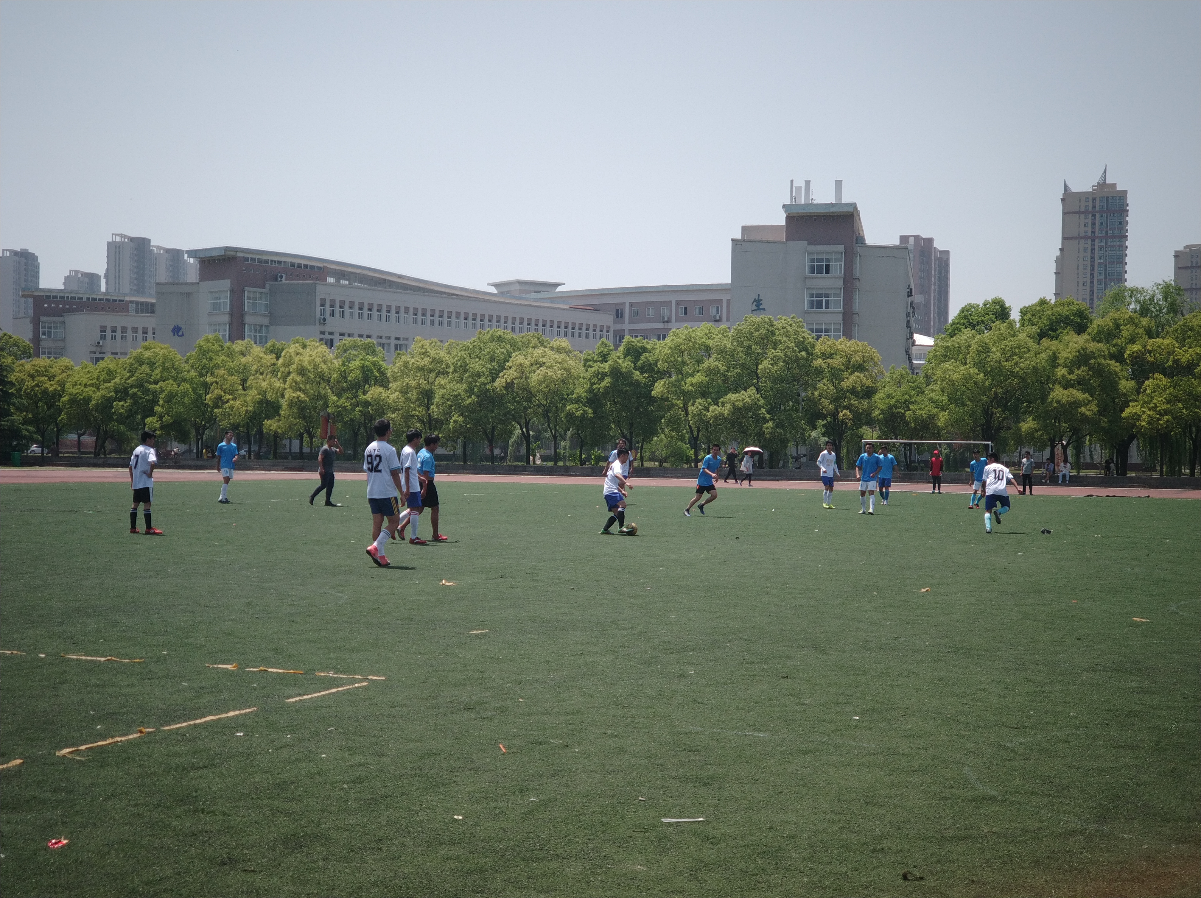 本着友好、拼搏的精神,随着裁判员一声哨响,比赛正式开始。比赛开场我院与继续教育学院的球员立刻开始了他们猛烈的进攻,双方的球员们都毫不示弱, 展现出各自技术的脚法、默契的配合、缜密的队形部署,为我们带来了一场精彩绝伦的比赛!