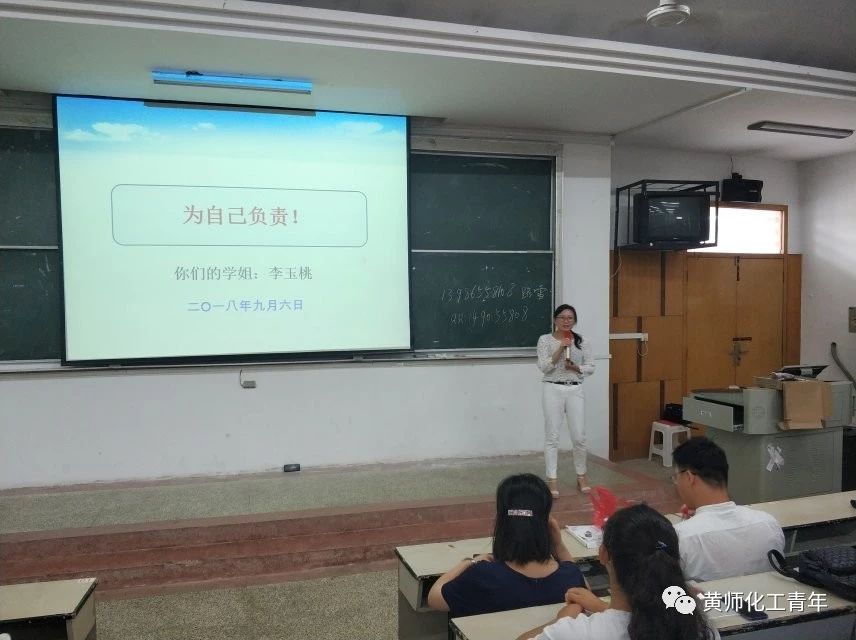 9月6日下午,我院于b01举行了校友讲座,请到了我院考取南京大学、武汉大学研究生的邵东学长和李玉桃学姐为大一新生分享学习经验。讲座由辅导员胡永红老师主持。