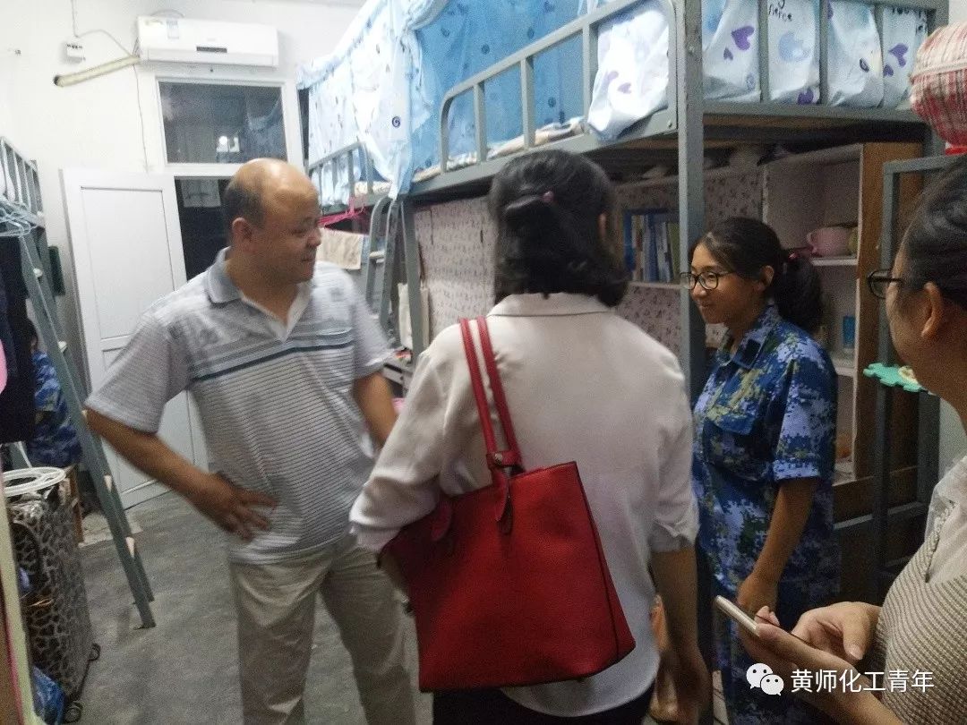 在走访的过程中,老师们与新生亲切交流,细心询问新生是否习惯大学的生活等状况,并就宿舍通风、国庆期间去向、安全问题、宿舍环境等方面对新生表达了亲切的问候。