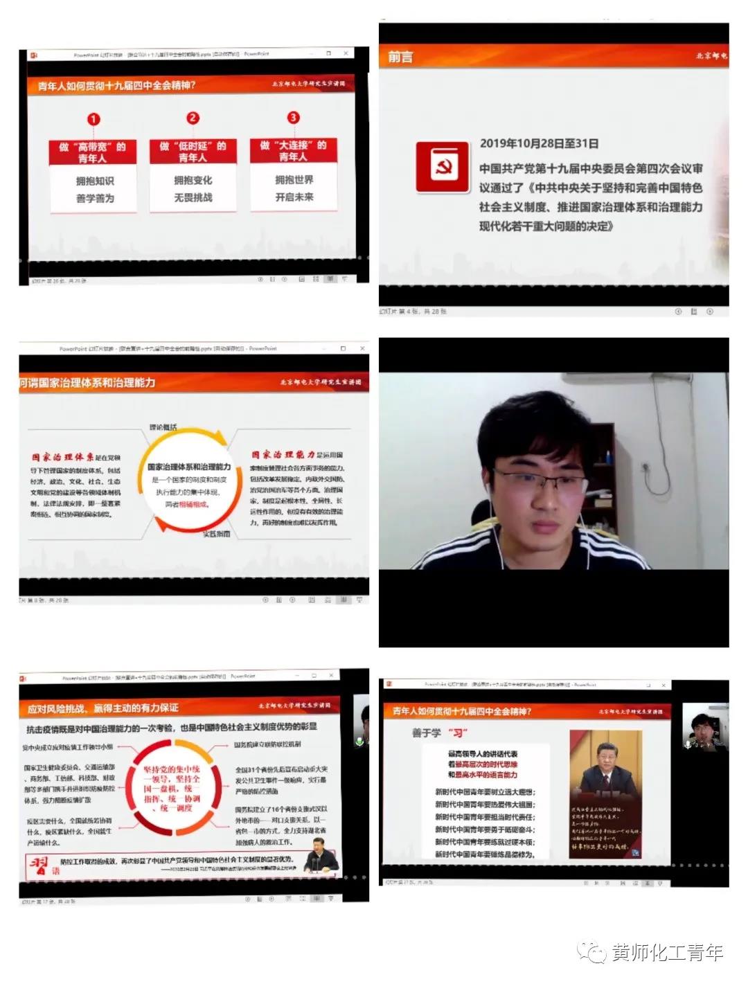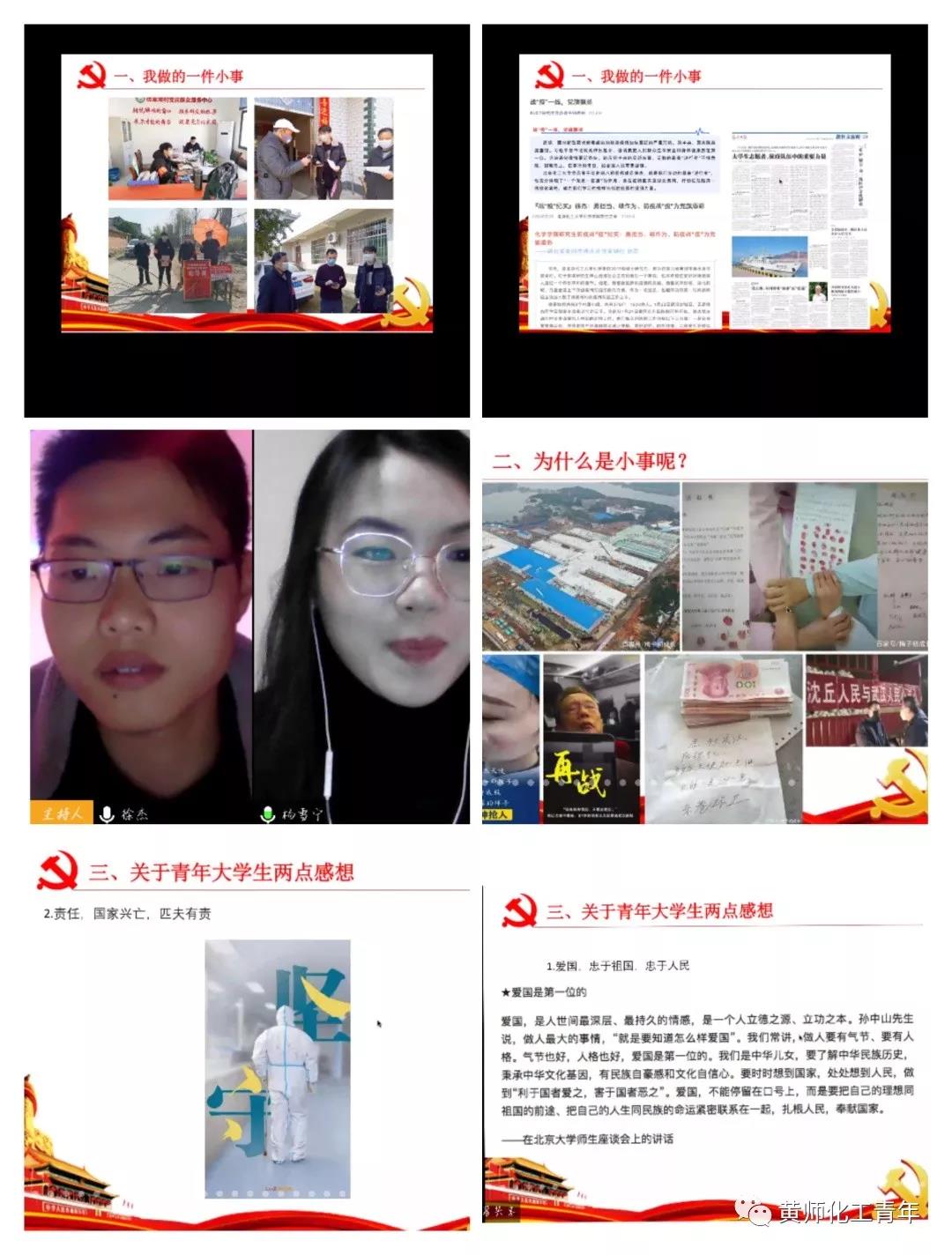 2020年4月18日晚上七点,围绕“立言新时代,战疫青年声”主题,bv伟德国际1946部分本科生和北京化工大学、北京邮电大学部分研究生联合宣讲,活动以视频会议直播的形式举行,参加本次会议的有我院第112期团校学员和北京高校研究生 。主持人杨雪宁学姐做开场白,宣布活动开始。