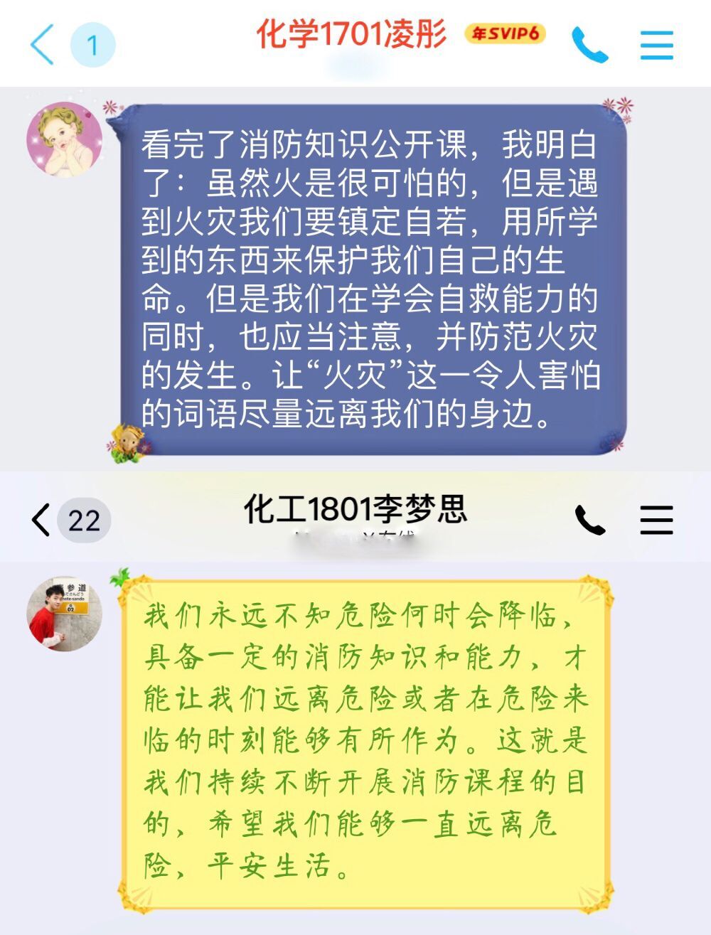 通过这次直播课,我们的安全消防意识得到了加强,同时也提高了对火灾等紧急突发灾害的自救逃生技能,在做实验时,更要注意遵守实验室安全规定,避免不必要的灾难发生。当火灾发生时,一定要冷静应对,科学自救和求助他人。我们也应该反思,不做违背自然的事情,应当尊重自然,顺应自然,保护自然。让我们共同努力,消除火灾隐患,让青春没有遗憾!