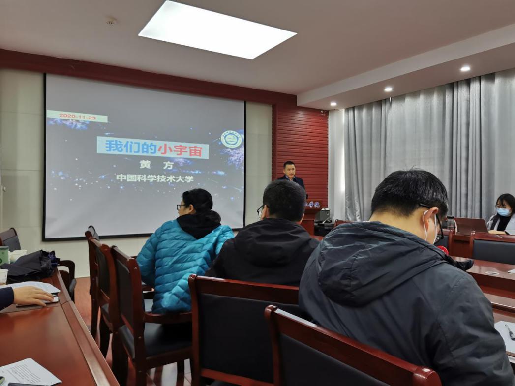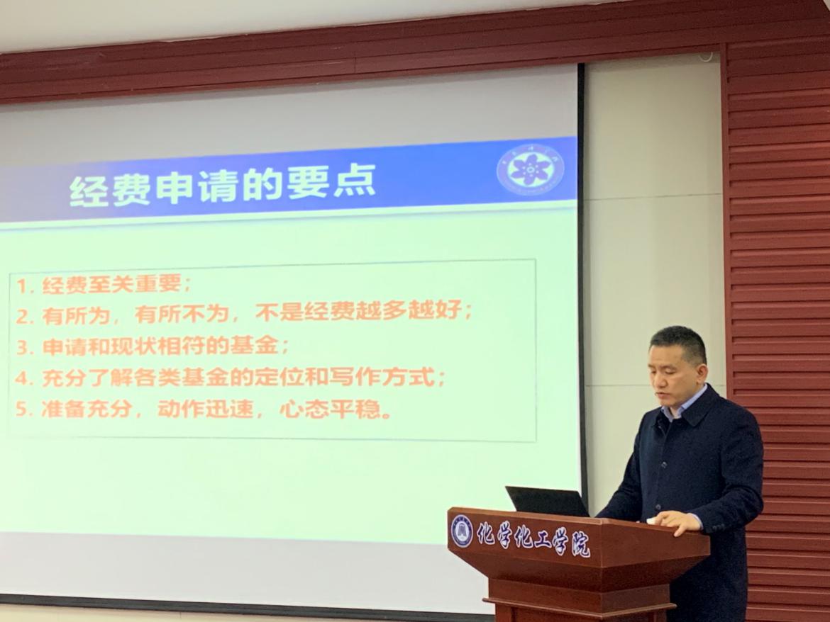 11月27日下午,中科大黄方教授应我院邀请,于化学楼407室分别给我院青年教师上了一堂优质的“基金委经费申请”课,并给我院师生带了一场有趣的科普讲座。两场讲座均由田正芳院长主持。