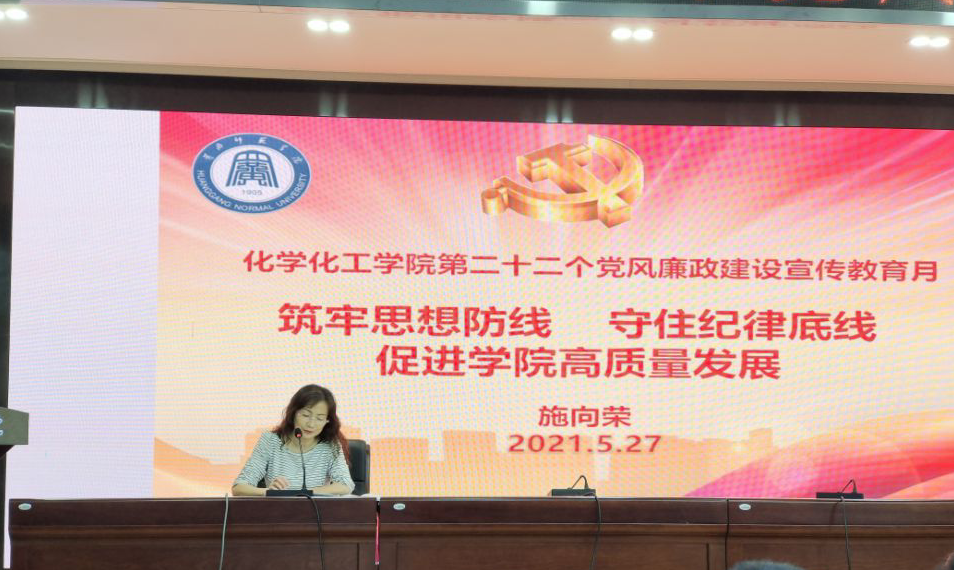 根据《bv伟德国际1946第二十二个党风廉政建设宣传教育月活动实施方案》的具体安排,5月27日下午2:00,在致远楼三楼会议室党总支书记施向荣为bv伟德国际1946师生讲授题为《筑牢思想防线 守住纪律底线 促进学院高质量发展》廉政党课,并就学习《中国共产党普通高等学校基层组织工作条例》作《加强学院基础党组织建设 落实立德树人根本任务》专题辅导报告。bv伟德国际1946全体教师和学生代表参加会议。
