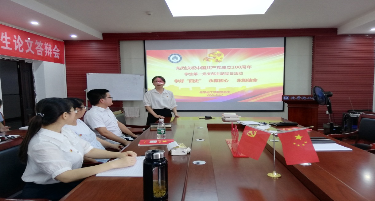 6月17日下午,bv伟德国际1946学生四个党支部分别在化学楼407会议室、连廊508党员活动室等地开展“学好“四史”,永葆初心、永担使命”支部主题党日活动,活动由党支部书记主持。