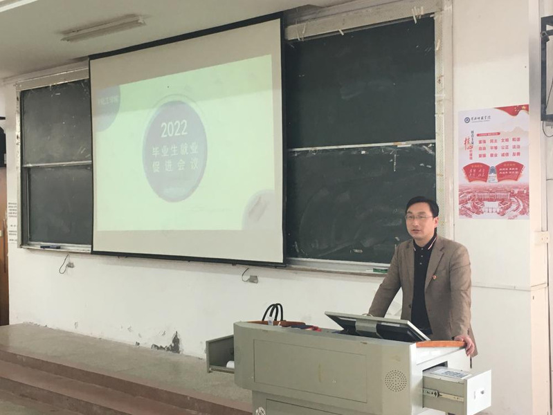 2022年4月21日,bv伟德国际1946在博学楼A01教室召开了2022届毕业生就业促进会议。学院党总支书记施向荣、院长田正芳、党总支副书记龙刚、毕业班班主任以及2022届暂未就业的学生参加会议。会议由党总支副书记龙刚主持。