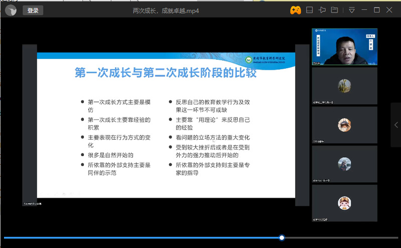 2022年12月8日下午,特邀正高级教师方碧金老师通过腾讯会议给化学教研室教师、化学专业所有本科生、教育硕士研究生在线作报告:两次成长,走向卓越。方老师从新时代教师要求说起,联系自身成长成功经验,介绍了怎样才能从职初教师成长为骨干教师、怎样才能再从骨干教师蜕变为卓越型教师。鼓励同学们树立伟大理想,勤勉好学,拒绝“躺平”,绝不“摆烂”,主动实现两次成长,最终走向卓越,遇见更美好的自己。