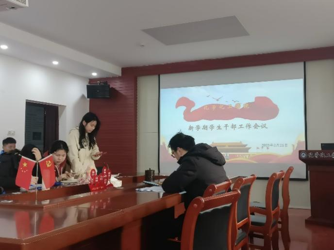 2023年2月21日,化学化工学院在化工楼407会议室召开新学期第一次学生会干部大会,学院党委副书记龙刚、学生会全体干部参加本次会议。会议由院学生会主席郑雨涵主持。