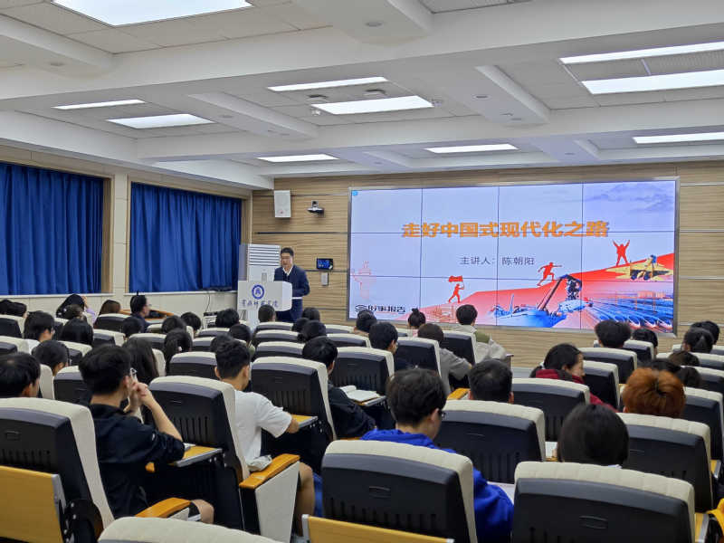 陈朝阳以“走好中国式现代化之路”为主题,从“接续奋斗,追求千年梦想”、“立足国情,开辟全新道路”、“凝心聚力,推进复兴伟业”三个维度,围绕中国式现代化的理论发展历程、科学内涵和实践路径等三个方面进行了深入浅出的讲解。他同全体学生一起回顾了中华民族千百年来对实现伟大复兴的追逐和梦想,深入剖析了中国式现代化与西方化的本质区别,共同分享了改革开放以来几代中央领导集体以及新时代以习近平同志为核心的党中央为实现中国式现代化这一伟大历史任务所作出的各种努力、发生的巨大变化和取得的伟大成就,鼓励同学们树牢信仰信念,立志民族复兴,练就过硬本领,让青春在新时代新征程的生动实践中焕发出更加绚丽的光彩。