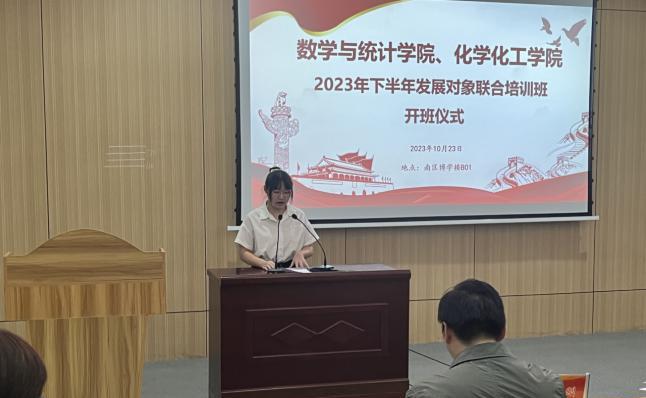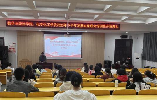 bv伟德国际1946学生党支部书记余杨、数学与统计学院学生党支部书记杜雯,bv伟德国际1946、数学与统计学院全体发展对象培训班学员参加开班式。