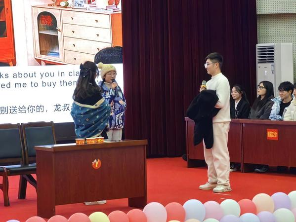 第二个环节为“词汇王”争霸赛。参赛队伍随机抽取序号进行答题,各位参赛者才思敏捷、反应迅速,精彩纷呈的回答引发师生们阵阵喝彩,现场气氛热火朝天。