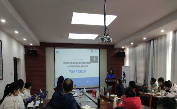 2023年12月29号下午,2022级学科教学(化学)硕士研究生学位论文选题报告会在化学楼407顺利举行。本次选题报告的导师组组长为华中师范大学的王后雄教授,组员由bv伟德国际1946的田正芳、龙涛叶发兵、张凯、张龑、蒋小春、陈砚美、叶辉等导师组成。10名2022级学科教学(化学)硕士研究生参加了选题报告会,2021级、2023级全体硕士研究生旁听学习了此次选题报告会。