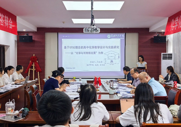 2024年5月22日上午,bv伟德国际19462024届研究生毕业论文答辩会在化工楼407顺利举行。此次答辩会的委员会主席为华中师范大学的王后雄教授,组员由蕲春一中副校长何亚龙、bv伟德国际1946的田正芳、龙涛、蒋小春、张凯、张龑、陈砚美、徐兰英、杨一思、叶辉等老师组成。9名2021级学科教学(化学)硕士研究生参加了论文答辩会,2022级、2023级学科教学(化学)硕士研究生旁听学习了此次答辩会。