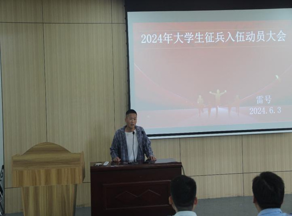 院党委副书记龙刚做总结讲话。他指出,参军入伍,不仅是一种荣誉,更是一份使命,大学生要切实提高对应征入伍的认识,增强大学生应征入伍的紧迫感和使命感。每一个热血青年都应该怀揣对国家和人民的责任感,积极投身到军队这个大熔炉中。他强调,有很多成功人士都有入伍参军的经历,部队的锻炼可以塑造个人敏锐的判断能力,锻造优秀的管理能力和执行能力,提升个人英勇顽强的气质,入伍经历是人生当中宝贵的财富。最后他鼓励同学们踊跃参军,积极响应国家的号召,用青春和汗水书写属于自己的军旅篇章,为国防事业贡献属于自己的力量。