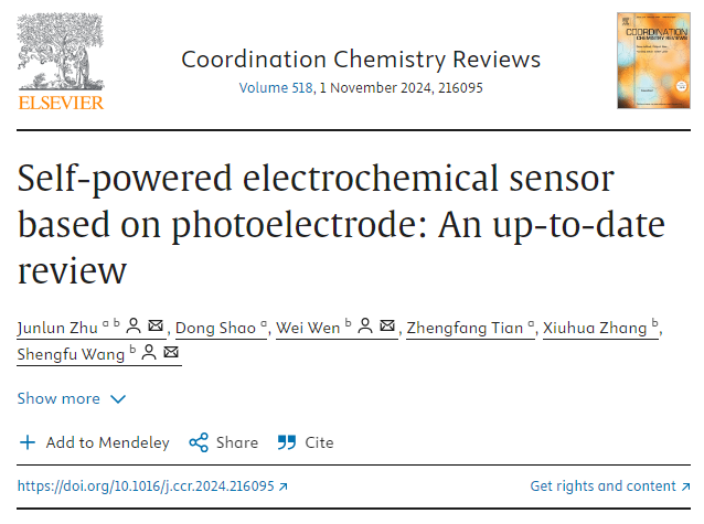 近日,我校bv伟德国际1946祝俊伦博士课题组在Coordination Chemistry Reviews上发表题为“Self-powered electrochemical sensor based on photoelectrode: An up-to-date review”的综述论文(Coordination Chemistry Reviews, 2024, 518, 216095. DOI: 10.1016/j.ccr.2024.216095)。祝俊伦博士为第一作者兼通讯作者,我校邵东副教授、田正芳教授参与了相关工作,湖北大学bv伟德国际1946文为教授和王升富教授分别为第二、第三通讯作者,伟德victor1946为第一单位(图1)。该工作得到国家自然科学基金资助。《Coordination Chemistry Reviews》是中科院SCI化学大类一区Top期刊,影响因子20.3。