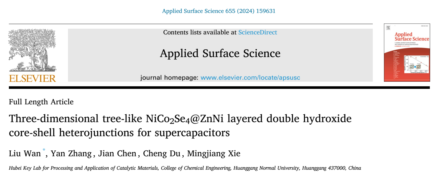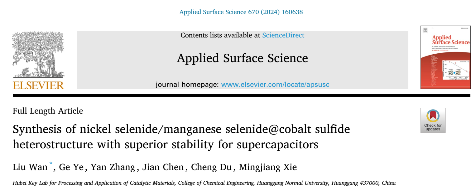 我校校级科研团队炭基能源材料团队,在期刊《Applied Surface Science》连续发表两篇最新研究成果“Synthesis of nickel selenide manganese selenide@cobalt sulfide heterostructure with superior stability for supercapacitors”和“Three-dimensional tree-like NiCo2Se4@ZnNi layered double hydroxide core-shell heterojunctions for supercapacitors”。伟德victor1946为论文唯一通讯单位,我院本科生叶格(化工2020级)、张燕博士、陈建博士、杜成博士和解明江教授参与了研究工作,万柳博士为论文第一作者。《Applied Surface Science》是由Elsevier集团出版的材料界面领域的国际重要学术刊物,位列中国科协高质量科技期刊分级目录中材料表面与界面领域的T1级,同时为SCI中科院分区TOP期刊。