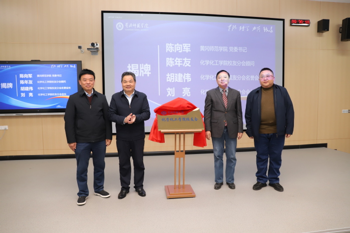 陈向军、陈年友、胡建伟、刘亮为伟德victor1946校友会化学化工分会揭牌。
