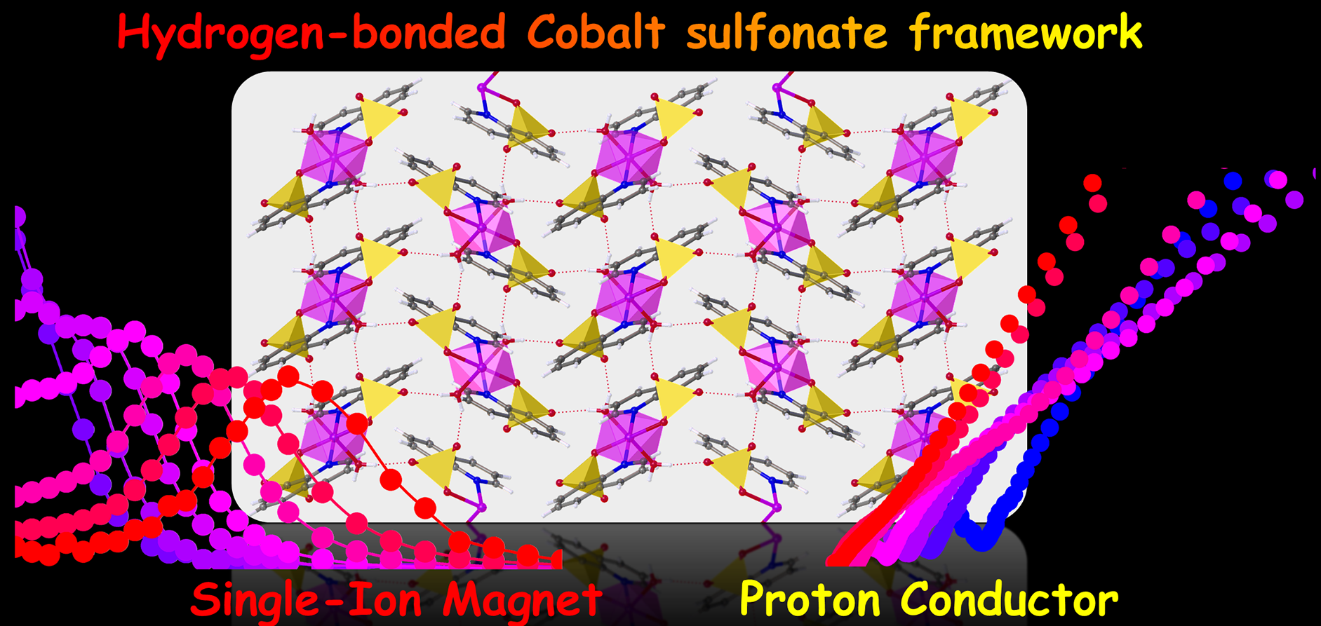 抗磁性金属磺酸盐已被广泛报道,而顺磁性金属磺酸盐配合物则非常罕见,尤其是展现出有趣的磁性或质子传导性能的化合物此外,金属氢键有机框架材料(Metalo Hydrogen-bonded organic frameworks, MHOFs)是一类新兴的多孔超分子框架材料,近年来已引起世界各地科学家们的广泛关注。近年来,邵东副教授团队围绕功能有机磺酸配合物和MHOF材料的构筑和功能化开展工作,取得系列进展Inorg. Chem. Front., 2022, 9, 6147-6157; Inorg. Chem. 2022, 61, 3754−3762Inorg. Chem. 2024, 63, 17478−17487.。基于前面的研究成果,邵东团队通过利用一种喹啉磺酸有机配体与钴盐反应,制备出罕见的磺酸氧配位的单核顺磁性金属磺酸盐配合物这些配合物单元进一步通过氢键相互作用组装成氢键框架结构。变温单晶和变温粉末衍射实验证实该化合物具有较高的热稳定性。磁性和电化学测量表明这些材料呈现出单离子磁体和质子导体特征在文章中,团队提出“磁各向异性金属离子-有机磺酸-配位水”三位一体的构建策略,实现多功能MHOF材料的合成制备。该结果不仅报道了首例双功能磁-顺磁性金属磺酸盐配合物,还为设计合成金属氢键有机框架材料提供了新的构筑策略