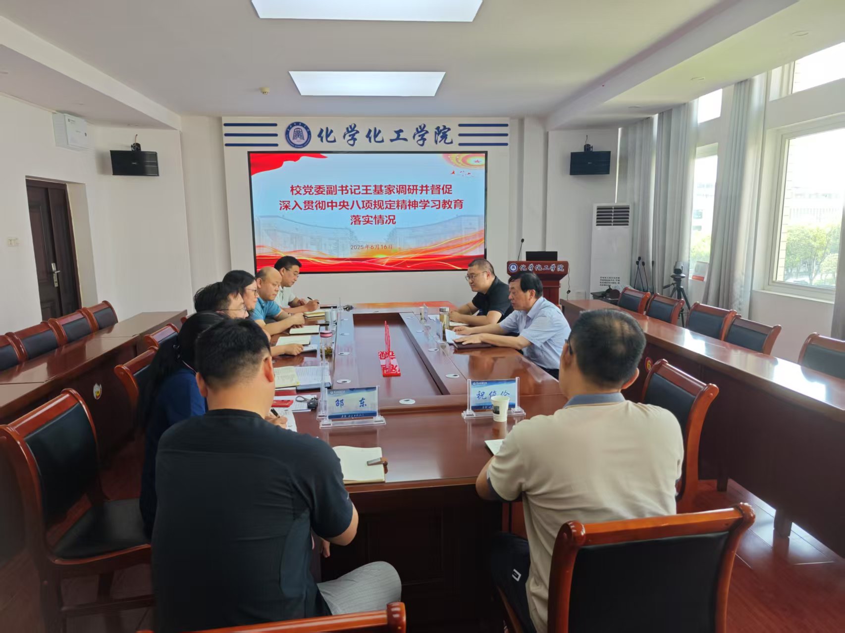 6月16日,为推动深入贯彻中央八项规定精神学习教育走深走实,校党委副书记王基家带领学习教育工作专班相关人员到学院调研并督导贯彻中央八项规定精神学习教育开展情况和年度重点工作完成情况。