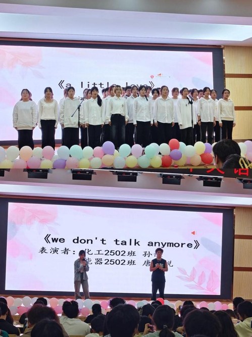 随着活动来到尾声,在等待投票记分的过程中,文艺部组织的由孙谦、唐欣悦两位同学带来的歌曲《We don’t talk anymore》和大一同学的合唱《A little love》的精彩演唱,为本次比赛接下了帷幕。