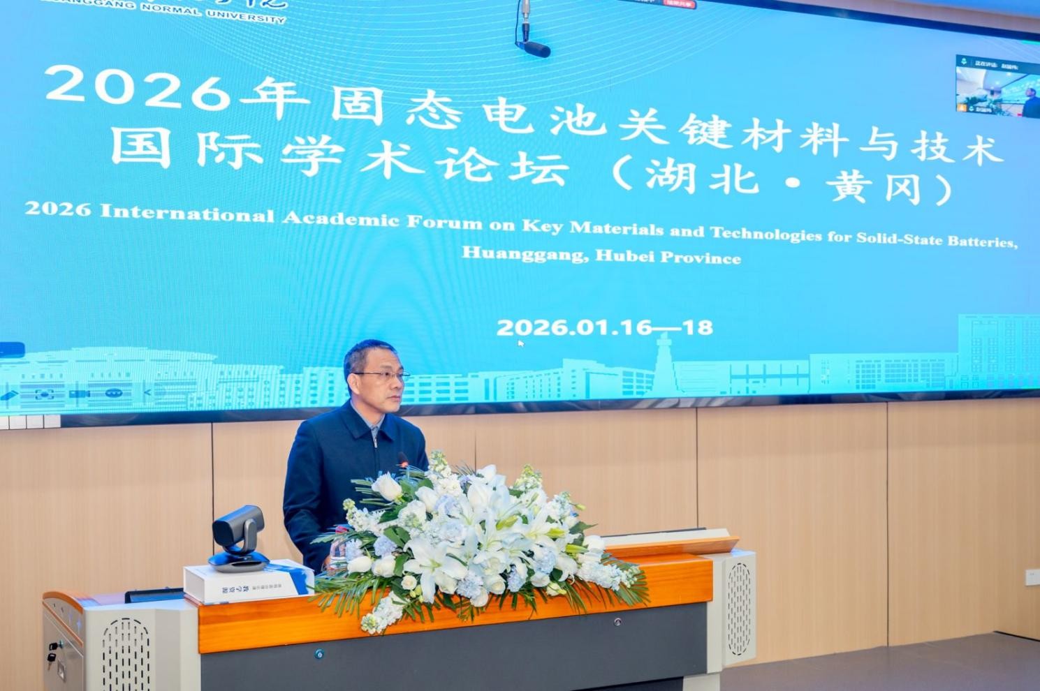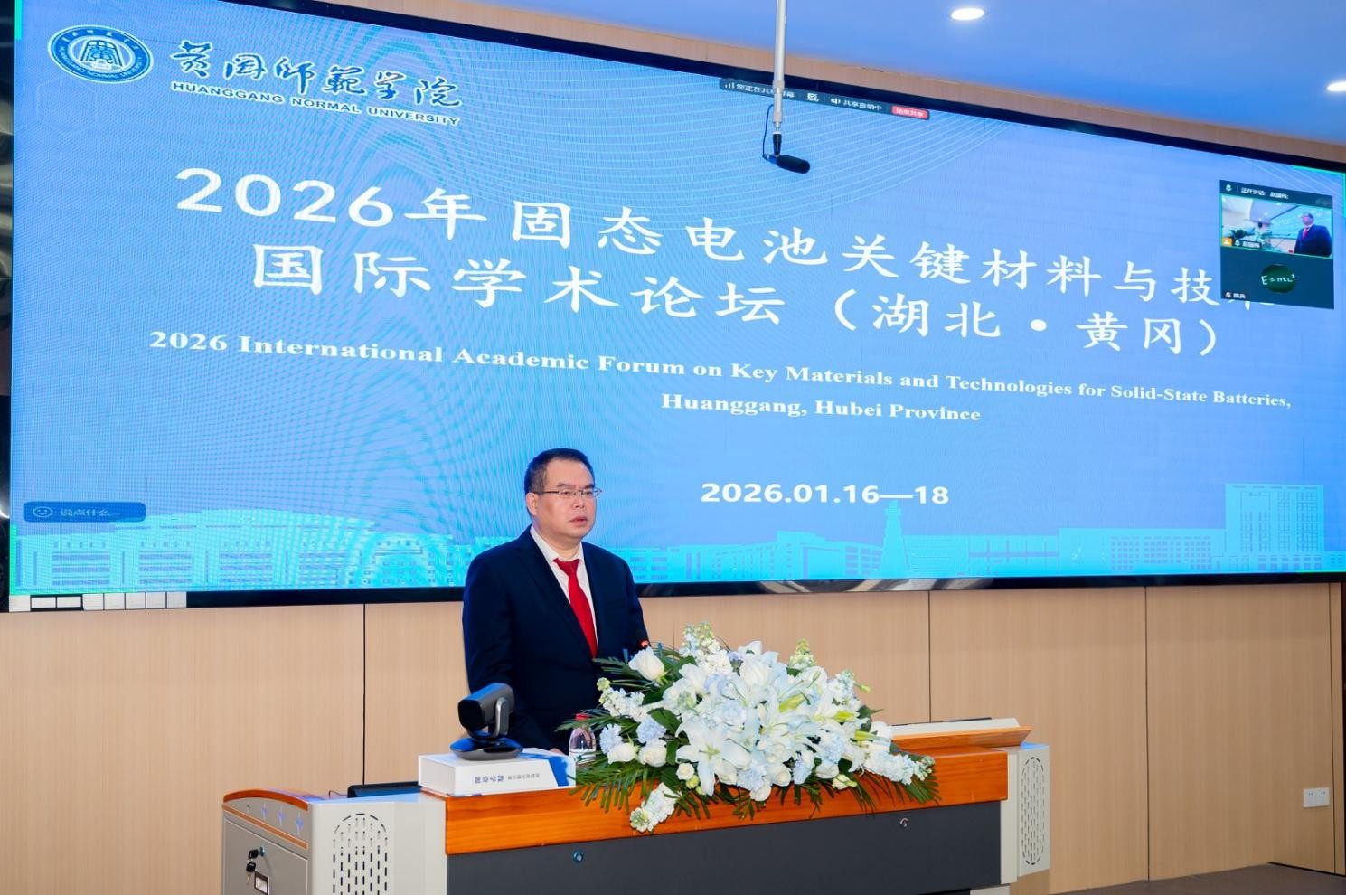 经湖北省人民政府外事办公室批复,1月16日至18日,由伟德victor1946主办的“2026年固态电池关键材料与技术国际学术论坛”在我校成功召开。校党委副书记、校长漆昌柱,黄冈市科协党组书记、主席彭学海出席开幕式并致辞,会议由bv伟德国际1946院长田正芳主持。