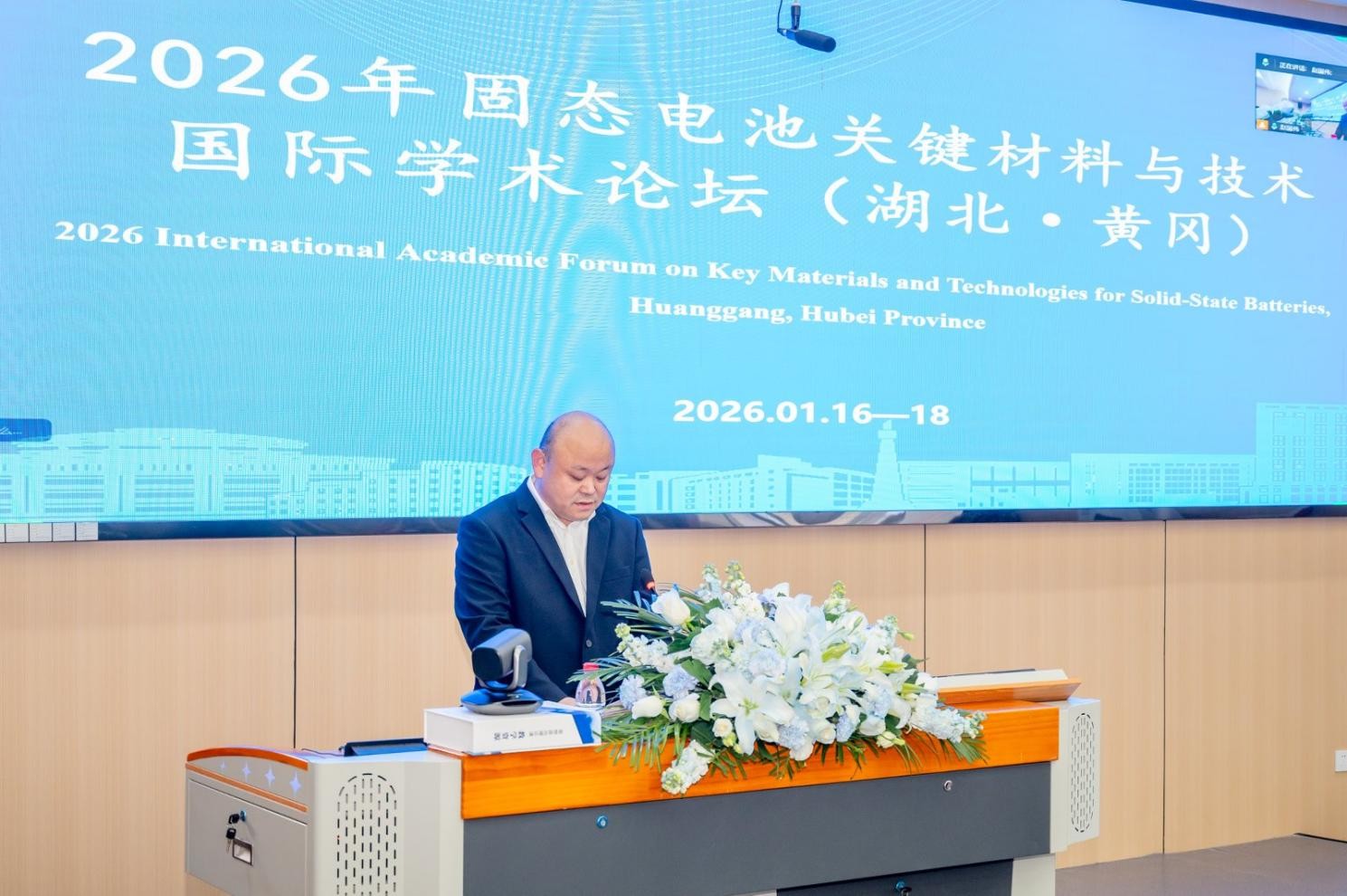 经湖北省人民政府外事办公室批复,1月16日至18日,由伟德victor1946主办的“2026年固态电池关键材料与技术国际学术论坛”在我校成功召开。校党委副书记、校长漆昌柱,黄冈市科协党组书记、主席彭学海出席开幕式并致辞,会议由bv伟德国际1946院长田正芳主持。